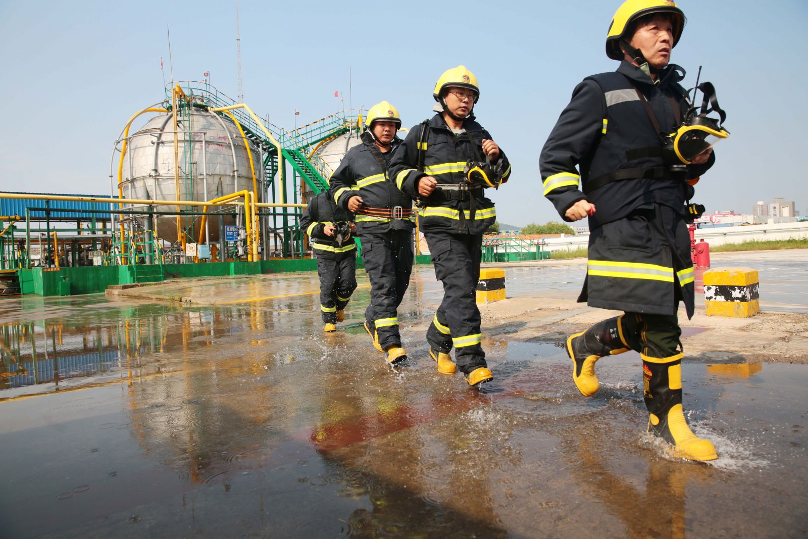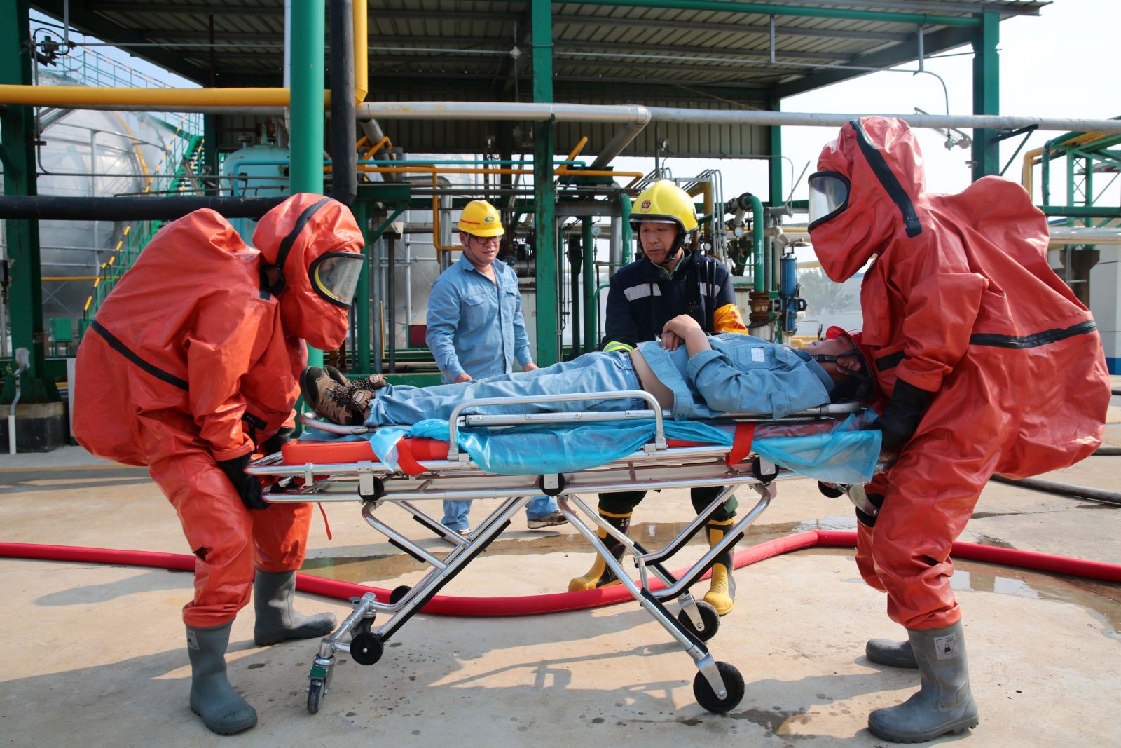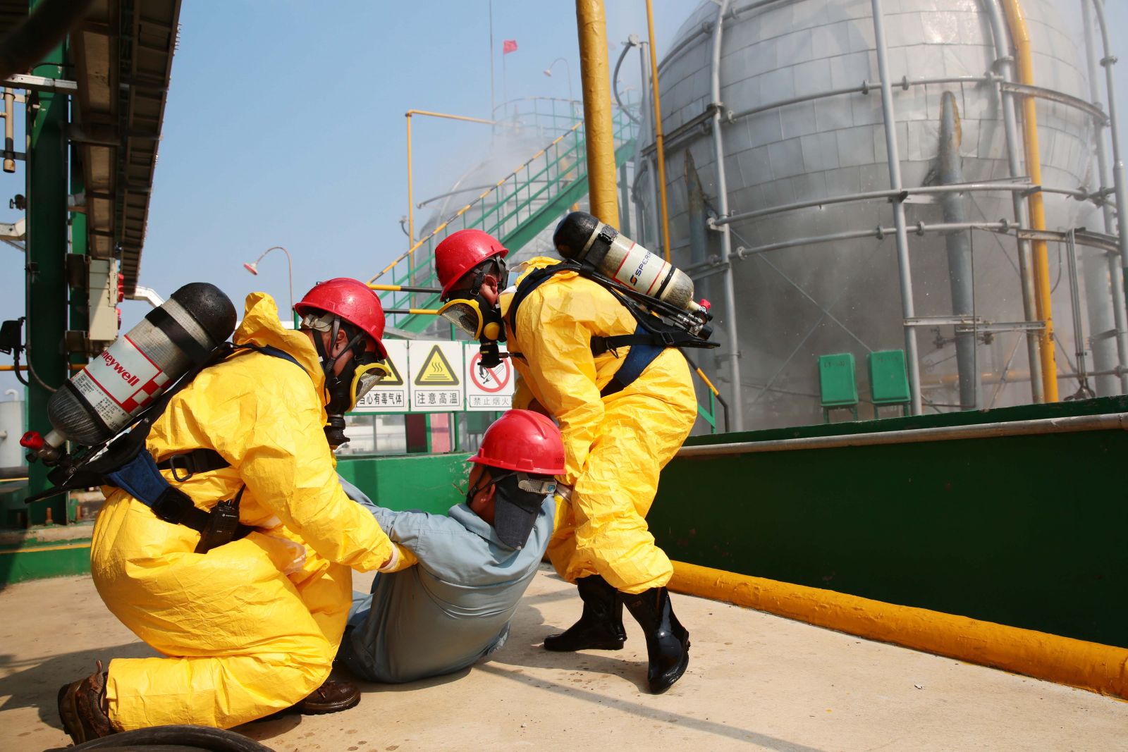 為檢驗(yàn)公司應(yīng)急救援時(shí)各環(huán)節(jié)的協(xié)調(diào)能力和應(yīng)急救援預(yù)案的可操作性,提高應(yīng)急人員在緊急情況下妥善處置突發(fā)事件的實(shí)戰(zhàn)能力,9月5日,公司以“液氨庫(kù)B球罐底部發(fā)生泄漏,現(xiàn)場(chǎng)當(dāng)班工人中毒”為假想事故,在液氨庫(kù)舉行秋季危險(xiǎn)化學(xué)品生產(chǎn)安全事故應(yīng)急救援演練。