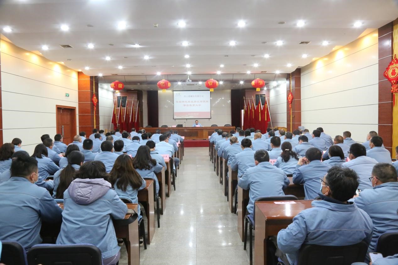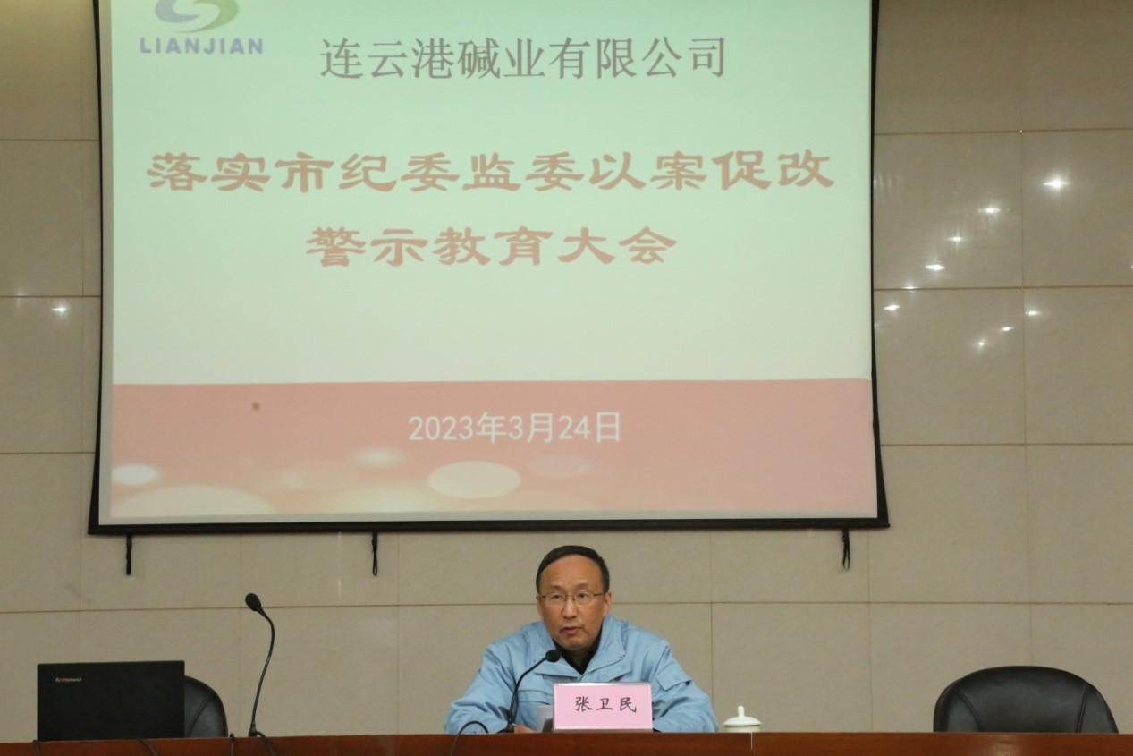 為深入學(xué)習(xí)貫徹黨的二十大精神和習(xí)近平總書記關(guān)于全面從嚴(yán)治黨的重要論述,堅(jiān)定不移將全面從嚴(yán)治黨向縱深推進(jìn),3月24日,堿業(yè)公司黨委組織召開(kāi)領(lǐng)導(dǎo)干部警示教育大會(huì)。會(huì)議由公司黨委書記、董事長(zhǎng)張衛(wèi)民主持,特邀市紀(jì)委第八監(jiān)督檢查室霍連升主任出席會(huì)議并授課,全體領(lǐng)導(dǎo)班子成員、中層干部和關(guān)鍵崗位人員共計(jì)126人參加會(huì)議。