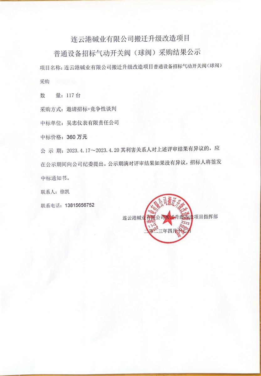 氣動開關(guān)閥(球閥)采購結(jié)果公示