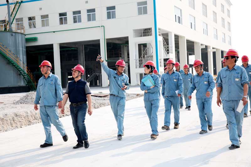 會后,車間領(lǐng)導(dǎo)親自陪同與會人員參觀了新的壓濾機(jī)廠房。