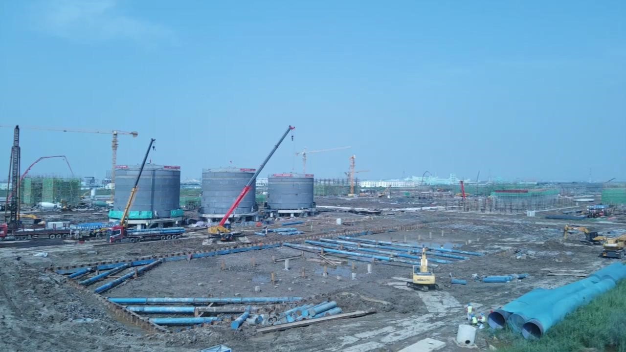 ⑴聯(lián)堿一標段101b聯(lián)堿辦公樓屋面女兒墻拆模養(yǎng)護;152中心控制室屋面鋼結構進場,砌體施工;151化驗中心四層支撐架搭設;340機電儀維修廠房鋼結構工廠預制,砌體施工;510重堿車間V51301A設備中心筒與溢流箱合攏,氨II澄清桶安裝,母液I澄清桶安裝.管廊基礎防腐回填;532重灰段深基坑回填、水池養(yǎng)護;280b換熱站屋面鋼結構工廠預制。