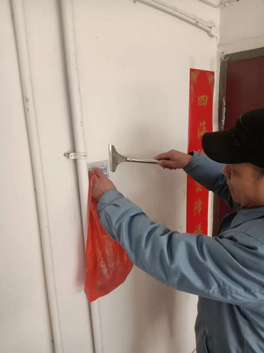 生活中,隨處可見的小廣告成為社區(qū)的“牛皮蘚”,很大程度上影響了社區(qū)的美觀。而氣化中心的青年職工們,化身“墻面清理大師”,前往堿廠生活區(qū)的路口、樓道清理一處處小廣告。他們心靈手巧、嚴(yán)謹(jǐn)細(xì)致,不放過每一個角落。青年員工們拿起鏟子,親手揭下一處處廣告條,收獲滿滿成就感的同時,也為堿廠生活區(qū)和居民們帶來了整潔清爽的生活氛圍。