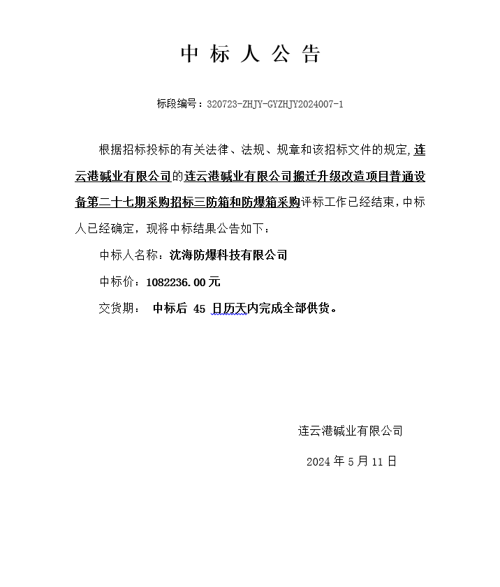 搬遷升級(jí)改造項(xiàng)目普通設(shè)備第二十七期采購(gòu)招標(biāo)三防箱和防爆箱采購(gòu)中標(biāo)人公告